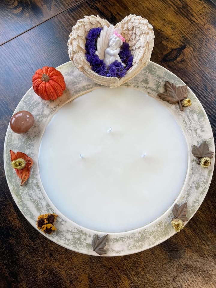 Mijn kaarsen worden met de hand gegoten en met zorg afgewerkt.